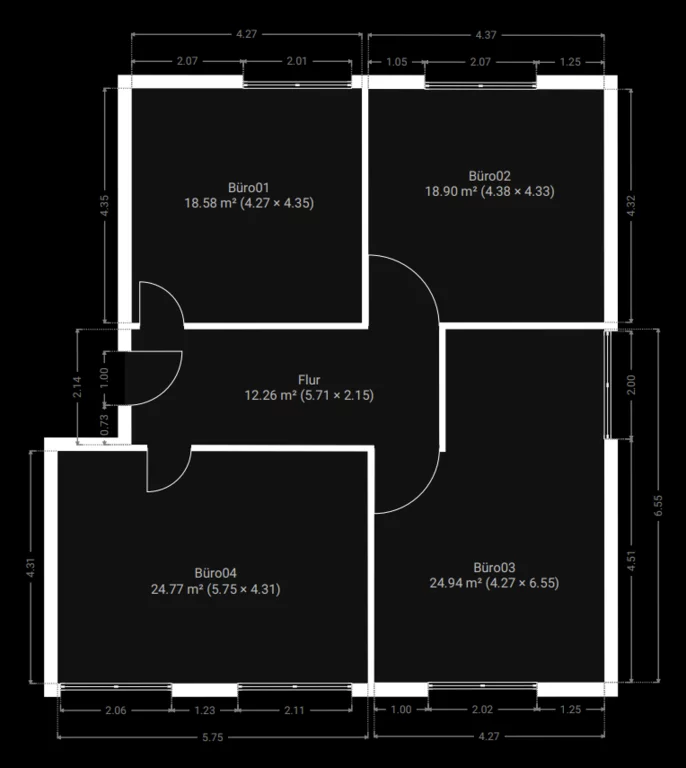 | Aufteilung | 4 Räume + 1 Flur |